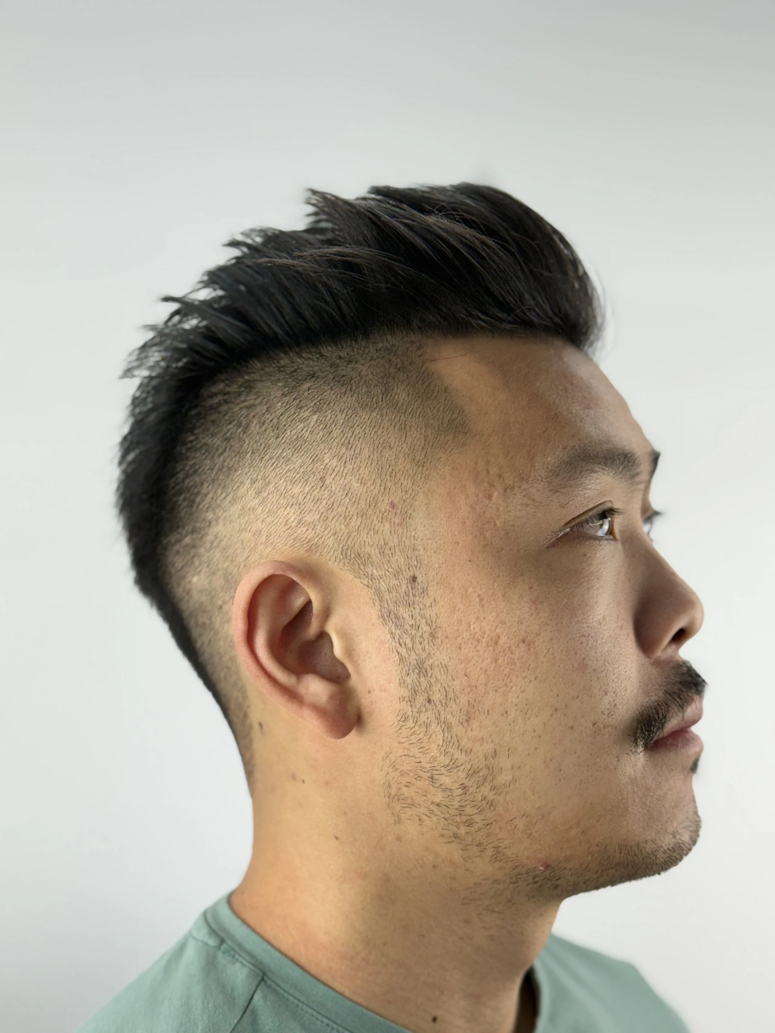 This is a general haircut service. The sides DO NOT go shorter than a 1 guard. The top of the haircut will be cut to the desired length, texture, and style.